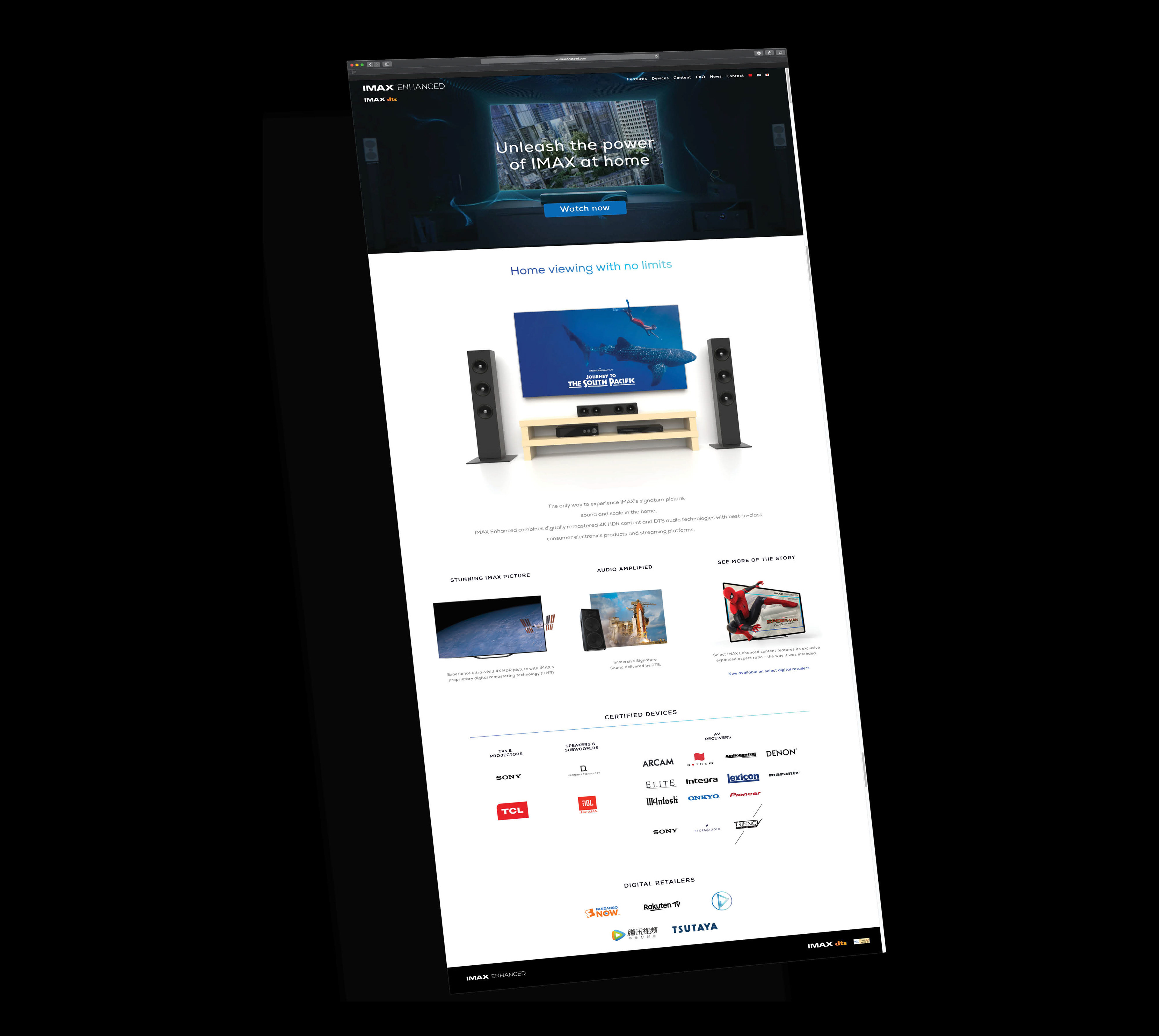 IMAX required a global launch identity for “IMAX Enhanced,” a new ecosystem bringing theatrical quality to home entertainment. The objective was to architect a unified visual language that seamlessly connected diverse hardware partners like Sony with content platforms like Amazon, ensuring the brand felt premium across web, print, and events.